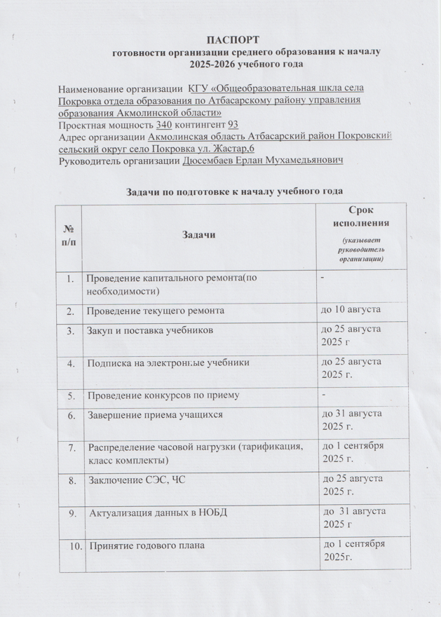 «Ақмола облысы білім басқармасының Атбасар ауданы бойынша білім бөлімі Покровка ауылының жалпы орта білім беретін мектебі» коммуналдық мемлекеттік мекемесіне